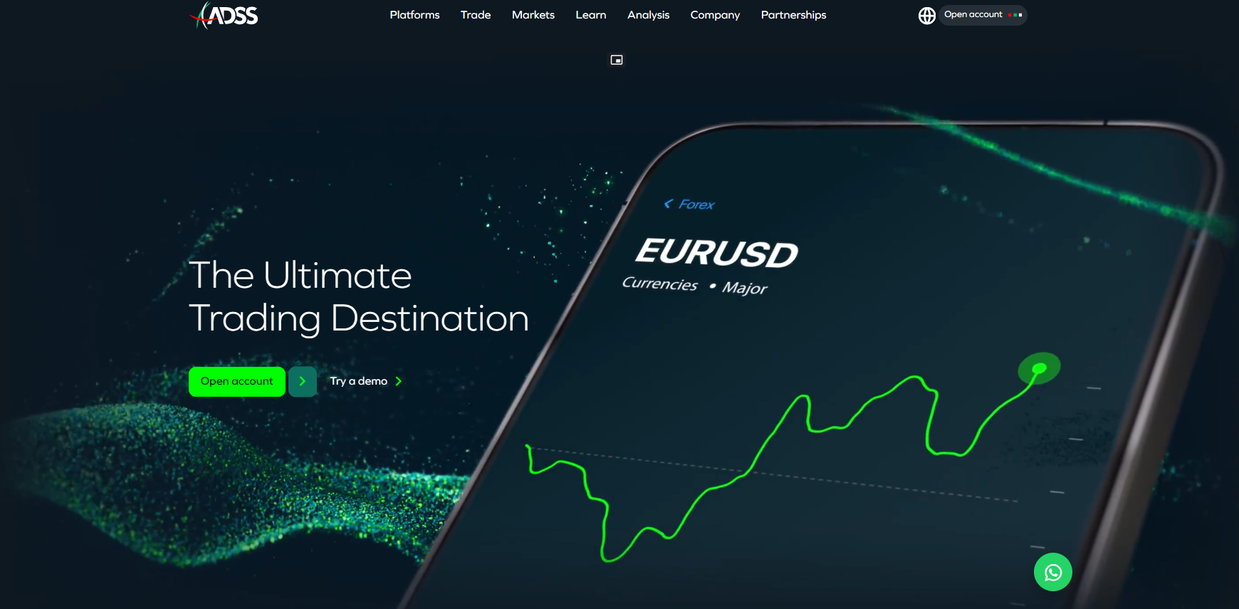 Structurally, the ADSS site is divided into standard sections: platforms, markets, education, analytics, about the company, and partnerships. Navigation is straightforward, and the site is mobile-friendly. It loads quickly and is technically stable.