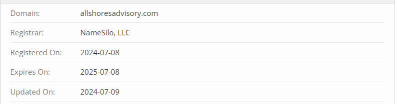 After this, there should be no doubts left about their illegal activities. The funny thing is that All Shores Advisory boasts of almost 10 years of experience. Allegedly, the company was founded in 2015 and entered the Russian market in 2017. Then why was the domain of the official website registered not in 2015, but in 2024? Where is the license from the Central Bank of the Russian Federation if they supposedly entered the Russian market in 2017?