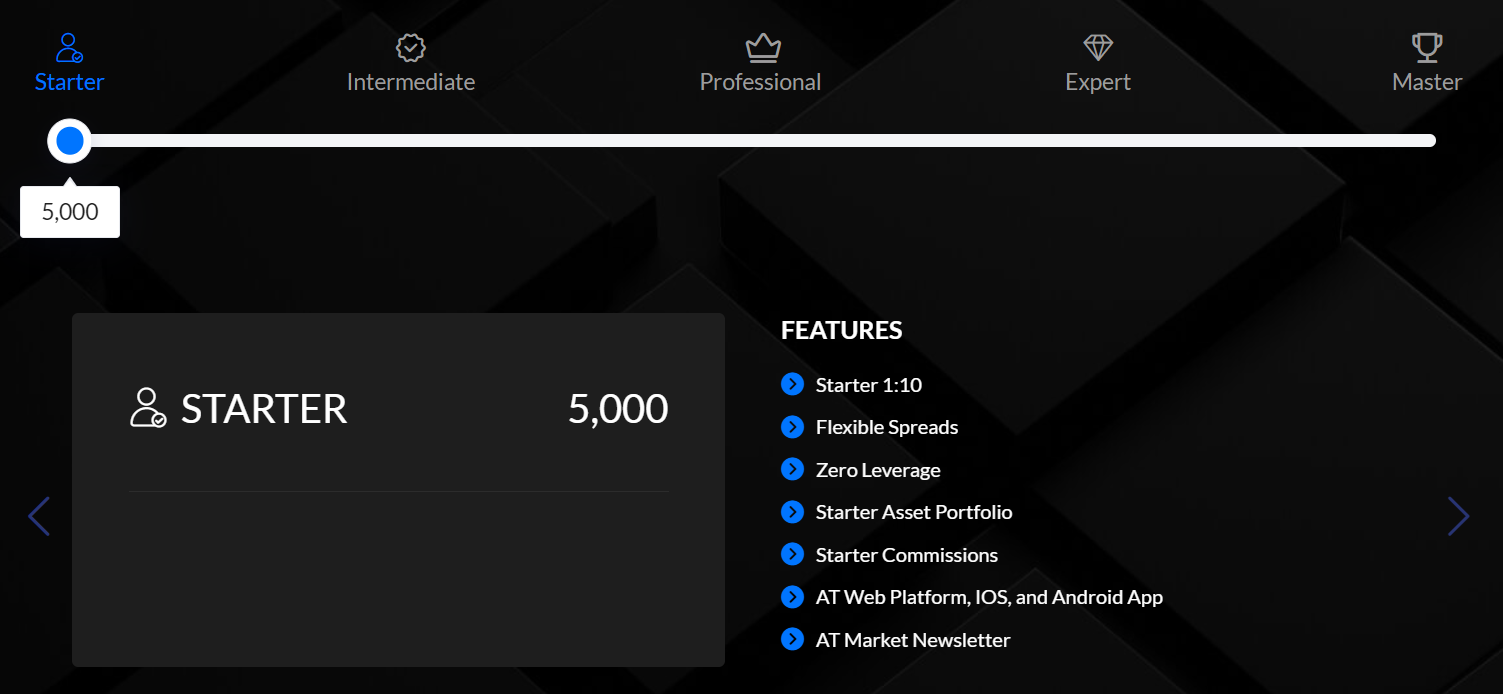 Another curious feature in the account types table is that four account levels promise trading via the AT Webtrader platform, while the Master account mentions SM Webtrader instead. Since Alphatrends doesn’t allow account type selection during registration, and there’s no difference in the personal account when switching tariffs, it’s easy to conclude that this name belonged to a previous scam broker and was simply forgotten to be updated.