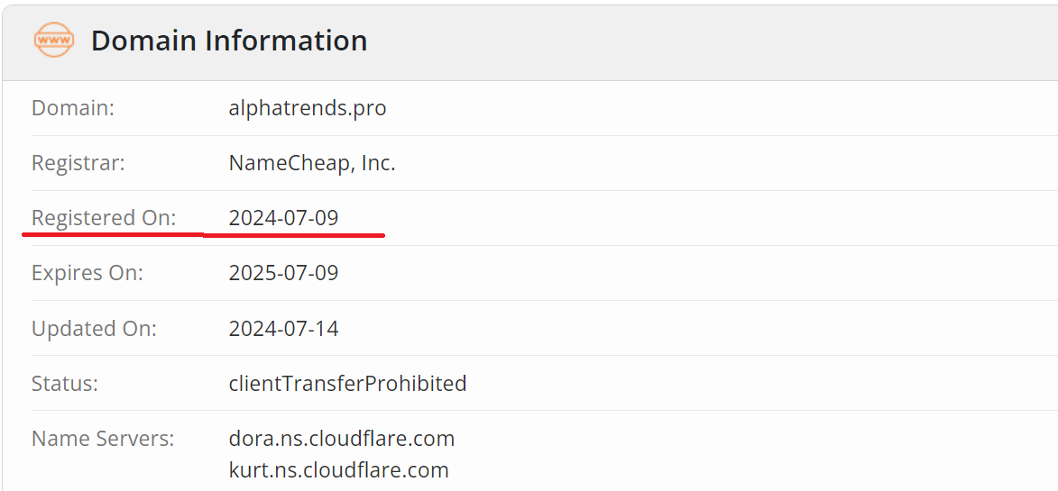 The company also hides information about the length of its existence. However, the copyright in the footer shows that the firm was established in 2020 or earlier. Meanwhile, WHOIS data indicates that the alphatrends.pro domain was registered on July 9, 2024. At the time of writing this review, the broker has been in existence for just one month.