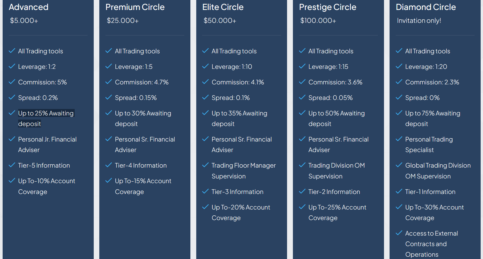 Altreserve’s trading conditions are also far from ideal. Some of them can be found on the account types page. Users can open accounts of five types: