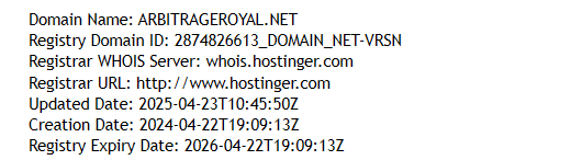 The operating history makes the picture even clearer. The website does not mention the company’s founding date, which is already suspicious. A domain check shows that arbitrageroyal.net was registered only in April 2024. This means the project has existed for just one year. For a brokerage company, that is nothing: serious players operate for decades, while here we are dealing with a fly-by-night operation that has only just appeared yet already claims to offer “the best trading platform in the world”.