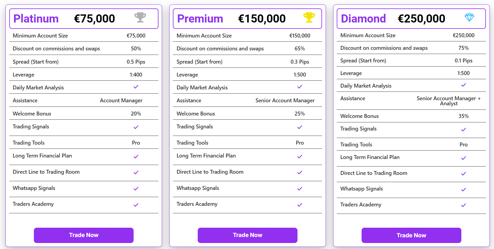 Another example is their trading signals, which are sent via email and Instagram. However, to access these signals, clients must deposit significant amounts. Bronze account holders cannot access them at all, while Silver account holders can only receive them once during account initialization. Most importantly, the source of these signals is unknown, and their effectiveness is unverified.