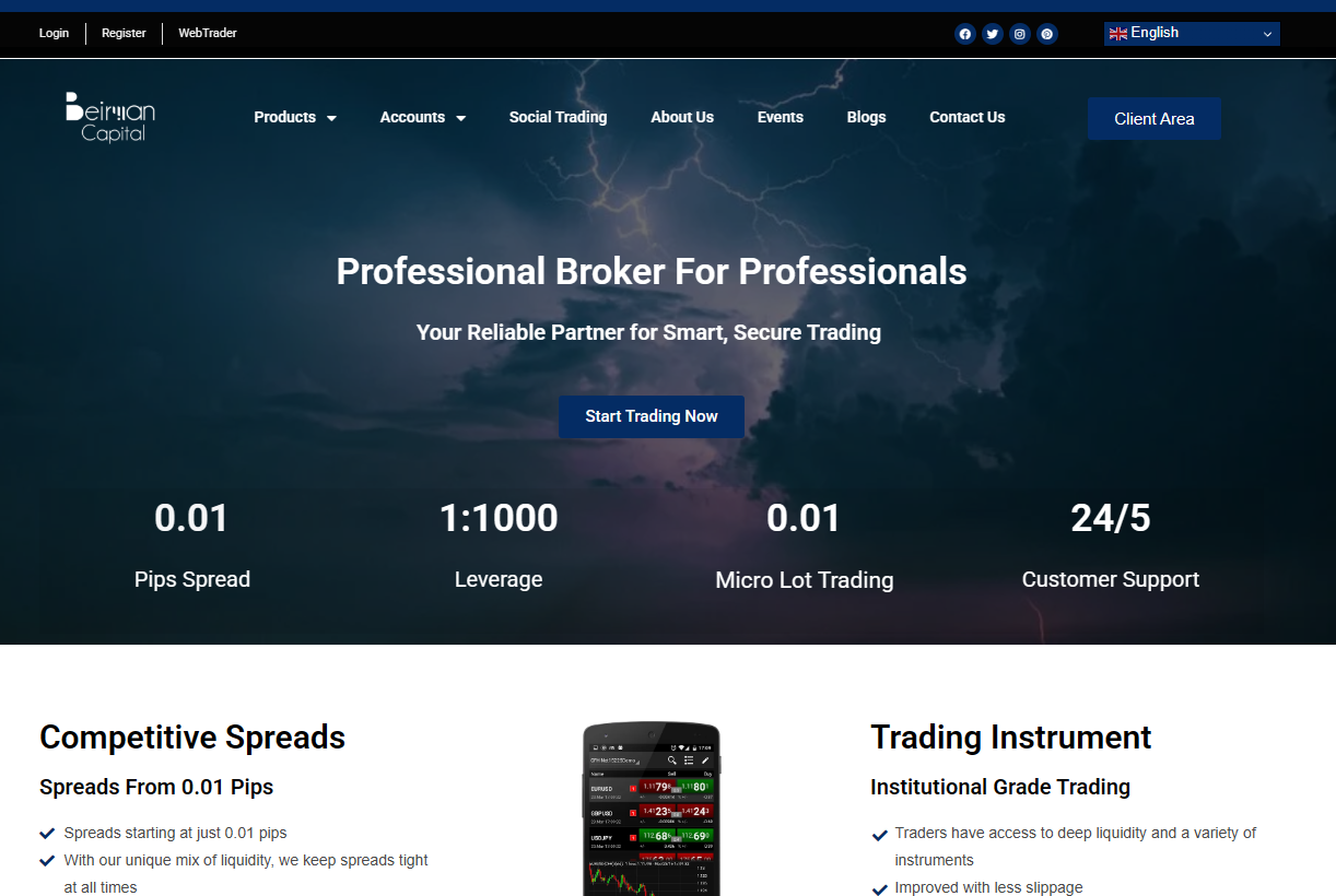Beirman Capital mentions a number of trading parameters on its website, but does so in a very vague manner — without specific figures, tables, or clear specifications. The company claims that spreads are “low” and “competitive”, and mentions spreads from 0.01 pips. However: