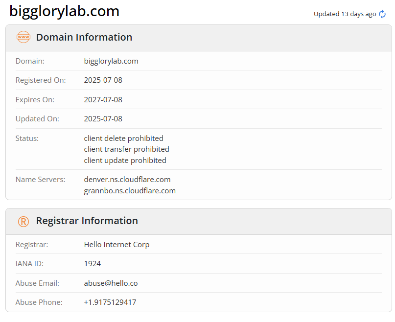 Regarding the website itself, a WHOIS check shows that the domain was created only on July 8, 2025. This means the project has existed for only a few months, despite any claims of experience or longevity.