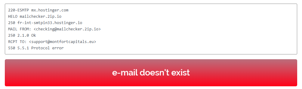 And the most critical red flag — the fake email address. There’s no point in writing to the listed email because it doesn’t exist. This is a typical sign of a pseudo-broker that provides contact details purely for appearance’s sake.