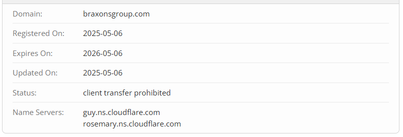 The platform’s operating history is extremely short. Unsurprisingly, the broker does not mention its founding date, likely because it only launched on May 6, 2025 — the date when the domain braxonsgroup.com was registered.