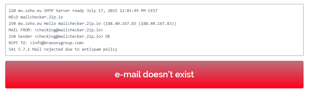 The company has provided two email addresses. They could list ten, but it would not matter, because these emails are fake. We tested both the support and info addresses, and both turned out to be non-functional. That alone is a serious red flag that strongly suggests we are dealing with a scam.