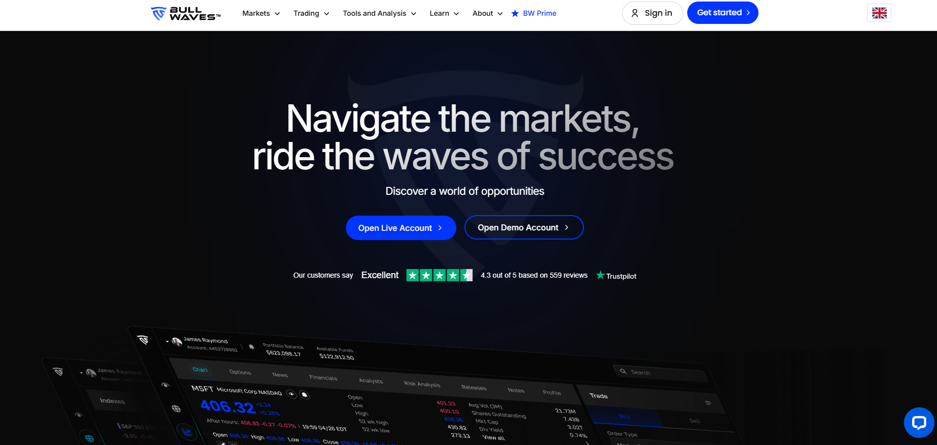 The official website is designed in white and blue colors. There is nothing particularly unique about the design. The site uses clichéd phrases such as “navigate the markets”, “start your trading journey today”, and other expressions that are often found among illegal and dangerous brokers.