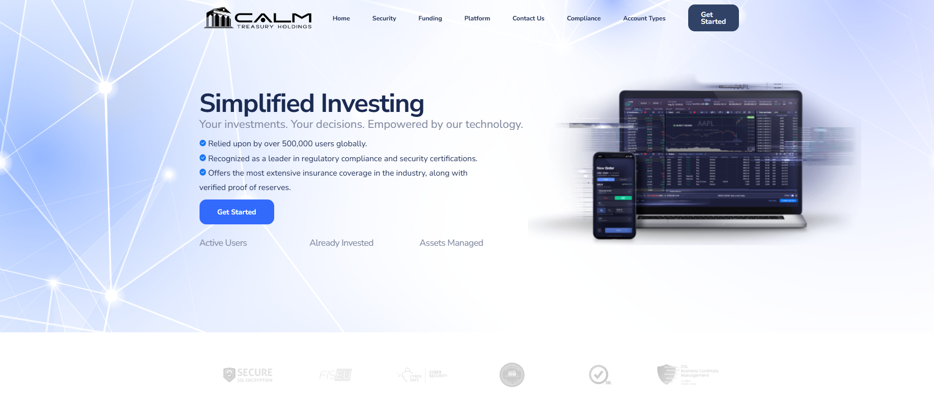 Let’s start with the appearance of Calm Treasury Holdings’ official website. The broker emphasizes “simplicity”, but, frankly, it seems more like a cheap attempt to hide weaknesses behind minimalism. The design feels standard, almost as if copied from templates used by other brokers aiming to create an impression of “safety”. Visually, the site doesn’t look like something that has seen serious investment — suspicious for a company claiming to work with hundreds of thousands of clients.