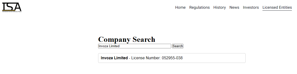 In the footer of CapexGo’s official website, the legal entity is listed as Invoza Limited. This organization is registered in the Republic of Nauru and claims to hold a license from the ISA. However, this should not be seen as any kind of real guarantee.