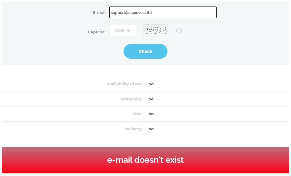 CAPINVEST LTD offers contact with managers via email and phone. However, the provided email turned out to be fake, making it pointless to send any messages. The phone numbers also seem suspicious. For example, one number has a Russian +7 country code, yet the company has no branches in Russia.