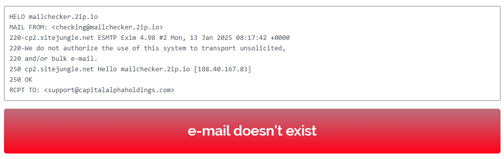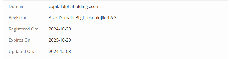 What about the company’s operating history? It’s very short. The domain capitalalphaholdings.com was registered in late October 2024. Yet, the scammers claim on their website to have “10+ years of experience”. That’s obviously a lie.
