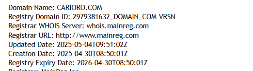 Furthermore, Carioro has no proven track record. The founding date is not disclosed, but based on the domain registration of the official website, it is clear the project was launched in the spring of 2025.