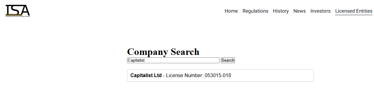 Carioro lists its legal entity as Capitalist Ltd, which is based in the Republic of Nauru, and it claims to hold a license from the local regulator, the ISA. We checked the register of the Nauru Financial Commission at isanauru.com and confirmed that Capitalist Ltd is indeed registered there. However, this should not be mistaken as a guarantee of reliability.