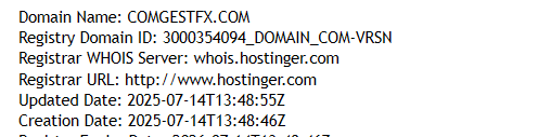 Moreover, this broker appeared very recently. It has no experience, as the official website domain comgestfx.com was registered on July 14, 2025. Without a domain, an online broker could not operate, and there is no evidence of any other websites.