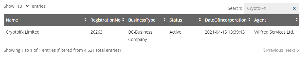 It’s time to check the legal status of the company and finally determine whether the firm is a scam or not. The broker shows a legal address in Saint Vincent and the Grenadines. This is true because checking the SVGFSA registry showed that CryptoIFX was registered there in 2021.