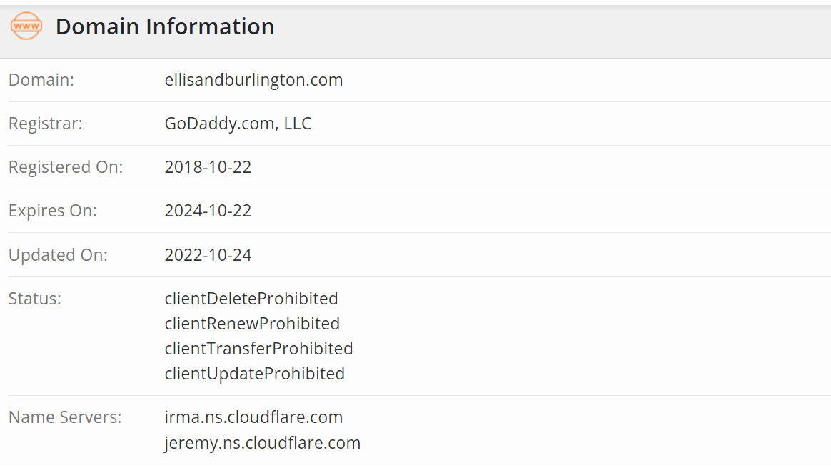 When we checked the information provided by the Whois service, we were unexpectedly surprised. According to it, the domain ellisandburlington.com was registered back in 2018.
