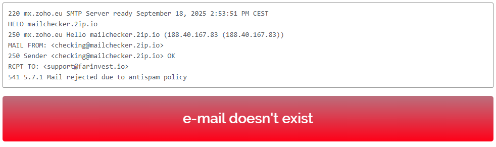 The website also makes claims about “years of experience”, but the facts show otherwise. The domain farinvest.io was registered only in August 2025. This is a brand-new website with no history. In other words, the company has no “long-term experience”, and all stories about its many years of operation are outright fabrications.