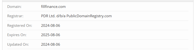 It turns out there is no license, and the legal address has been taken from another company. We won’t even bother checking Switzerland because it’s obvious this is fake too. Based on this, all other data is fabricated as well: the number of clients, years of operation, and assets under management. By the way, we can prove that Fill Finance hasn’t been operating since 2010 but rather since 2024. Take a look at the domain registration date — August 2024. That’s the real founding date of these scammers.