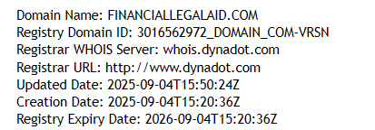 The company boldly claims “30+ years of experience” and “960 lawyers worldwide”, yet none of these figures hold up. In reality, the domain financiallegalaid.com was registered in September 2025, meaning the firm has existed for less than a year.