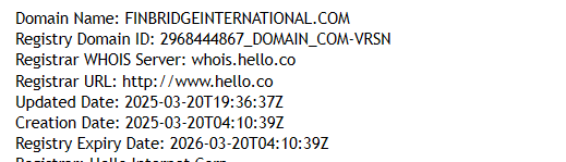 Third, the operating period. In the website footer, it says “© 2024 FinBridge International”, but this is nothing more than decorative text. A domain check showed that it was registered only in March 2025. In other words, the company has not even existed for a full year since its launch. Real brokers always highlight their history, founding dates, key stages of development, and licenses.