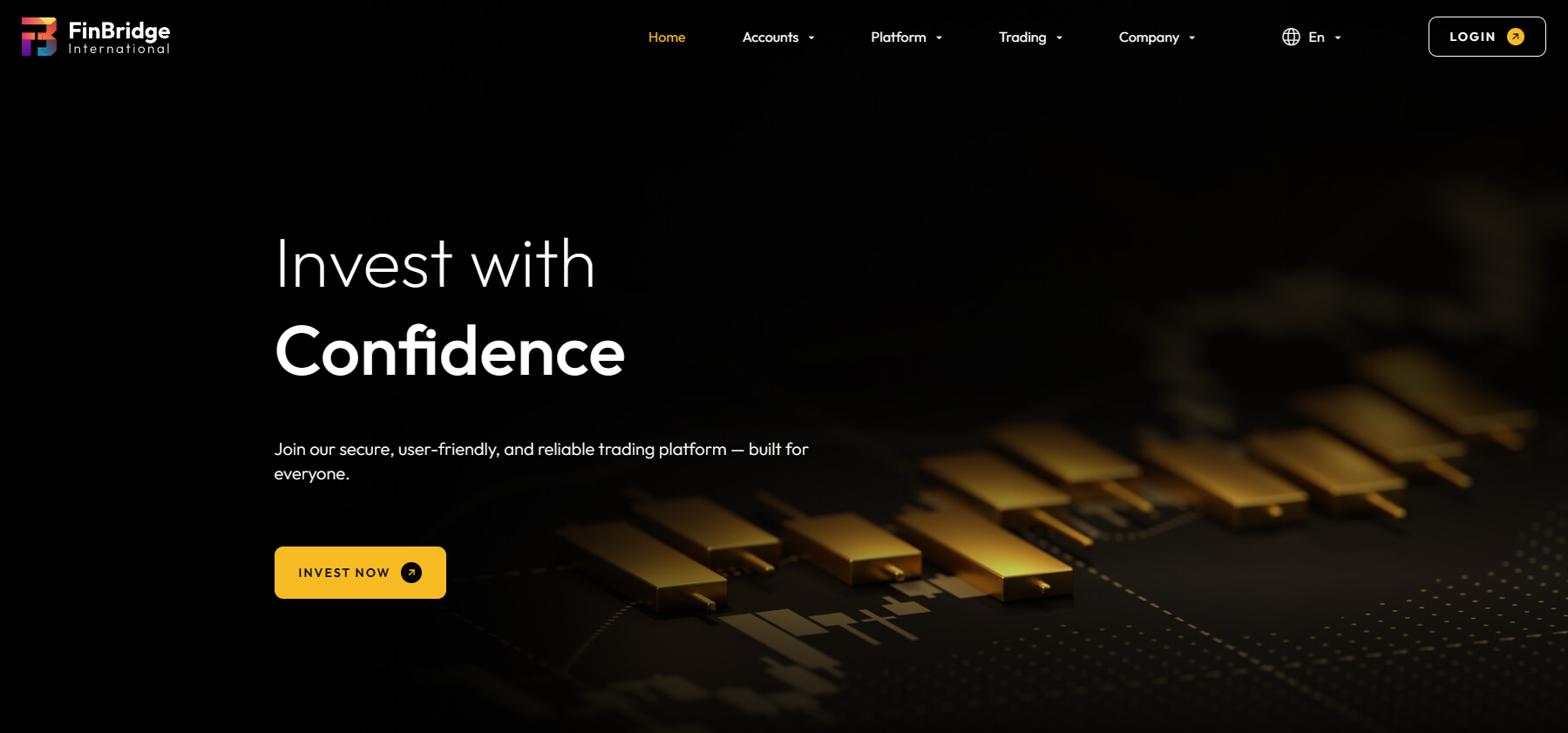 The first thing that catches the eye when visiting the FinBridge International website is its templated design. The layout looks neat but completely faceless: identical websites can be found among hundreds of other pseudo-brokers. No uniqueness, no real facts about the company, just a standard set of images and unsubstantiated promises.