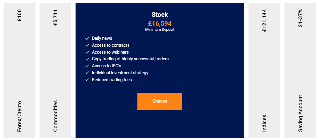 For example, for 100 pounds in the Forex/Crypto tariff, you can get access only to the news feed (which most real brokers provide for free). Increase the deposited amount by only 57 times, and you can enjoy the company’s webinars, which many licensed platforms also offer for free. On more expensive tariffs, clients are promised an abundance of perks: