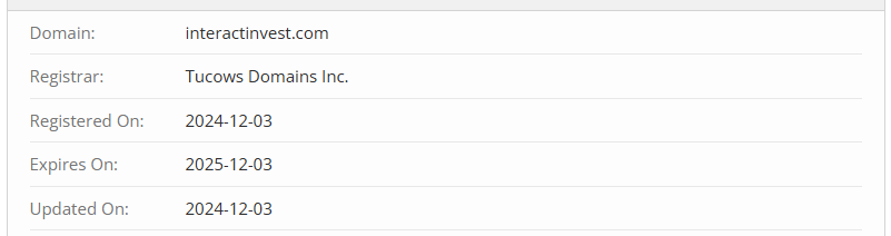 Second, the operating history is hidden. The truth is, this is a very new platform. It launched less than a month ago. How do we know? Easily. The domain interactinvest.com was registered on December 3, 2024. That is the true founding date of the company.