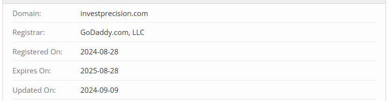 This is yet another fake broker, not a legitimate one. And no, the platform doesn’t even have substantial experience. The domain investprecision.com was registered in August 2024 — a very short operational period. The company is merely attempting to create the illusion of having been in business for a long time.