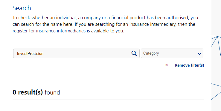Why hasn’t the firm obtained a license if it operates in Switzerland? The answer is simple: this company doesn’t actually exist, and the legal address is a straightforward deception. Try searching for InvestPrecision in legal registries — you won’t find anything. This organization is not registered.