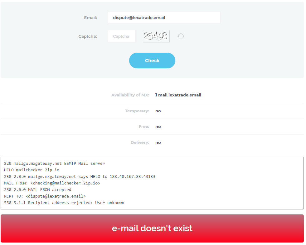 On the one hand, the broker lists multiple ways to contact them, but on the other hand, all of them are invalid. For example, the stated email addresses are fake — verification shows that they do not exist. Skype has also ceased to function. In the online chat, either there is no response at all or the user is forced to wait an excessively long time. There are no social media accounts, except for Facebook, and LexaTrade does not even appear to be aware of support through messaging applications.