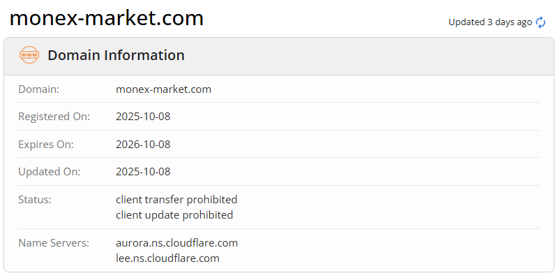 A check of the technical data for the domain monex-market.com reveals that the site was registered in October 2025. In other words, the company is brand-new — just a few weeks old. Despite that, it already claims to have “many years of experience”, “reliable regulation”, and “tens of thousands of clients”. Naturally, there is not a single piece of evidence to support these claims.