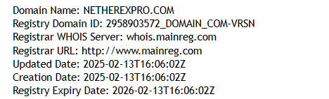 It is not even clear whether this organization is officially registered at all. The founding date is also hidden, but we can determine how long the platform has existed by checking the domain registration date of netherexpro.com. The site was created on February 13, 2025 — less than two months ago. There is no experience here. Moreover, the domain was only purchased for one year, meaning the project has no intention of operating long-term.