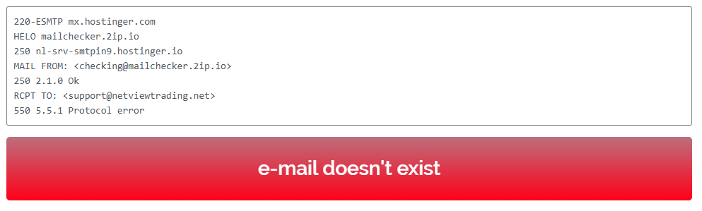 If you try to contact NETVIEW TRADING COMPANY’s managers, you will likely not succeed. While the firm does list a phone number and an email address, these are fake. We checked the email — it literally does not exist. The phone number is probably fake as well. There is also a contact form, but there is no guarantee that anyone will respond.