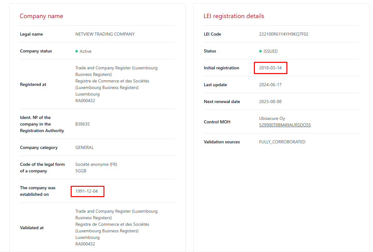 Let’s start by examining its registration in Luxembourg and why NETVIEW TRADING COMPANY does not disclose a regulatory authority or license number. The LEI code confirms that a company with this name is officially registered in the country. However, let’s take a closer look at what kind of company it is. It was founded over 30 years ago — on December 4, 1991. We highly doubt that the subject of our review has such extensive experience. The forex industry only began emerging in the 21st century.