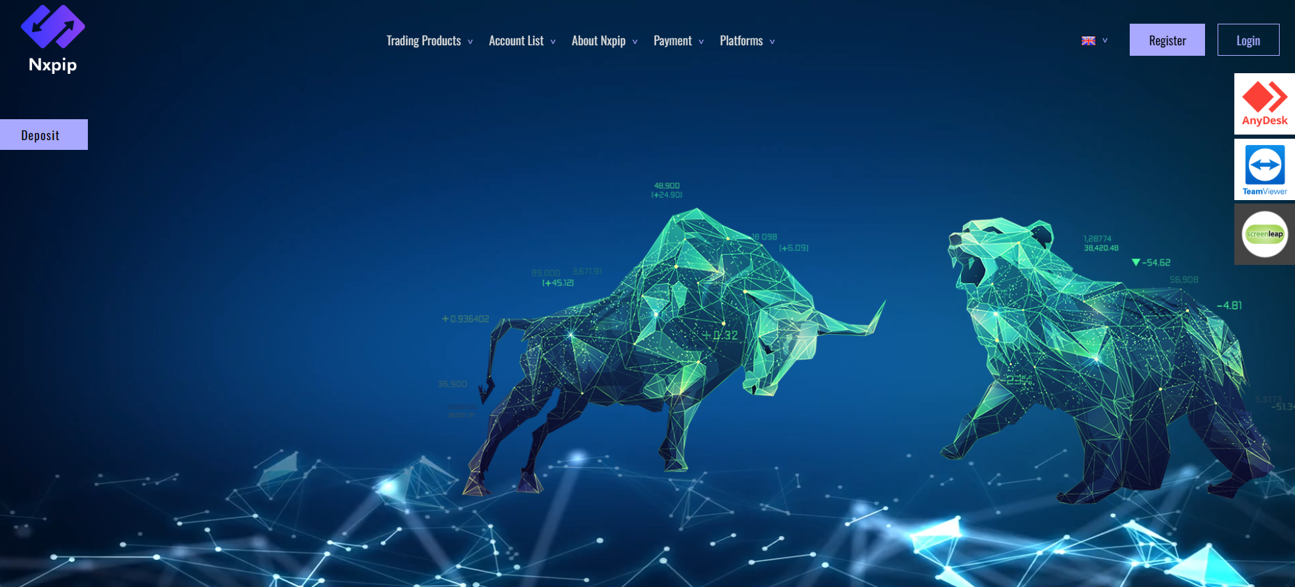 On the right, it gets even more interesting — there are buttons for TeamViewer, AnyDesk, and Screenleap. This is a direct indication that Nxpip offers clients remote access to their computers through these programs. Such practices are actively used by fraudsters: the trader is “helped” to install the software, after which the scammers gain full access to their personal data and wallets.