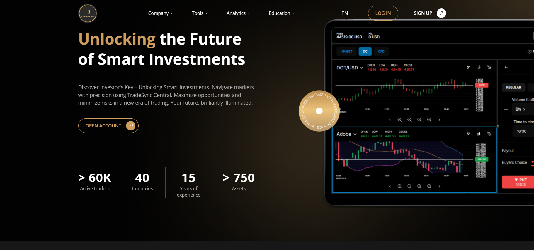 Placeit offers several account types: Basic, Standard, Gold, and Platinum. The only difference between them lies in the minimum deposit and the promises of “additional services”. Basic starts at $500, Standard at $5,000, Gold at $15,000, and Platinum as high as $30,000. The more you deposit, the more “privileges” they supposedly unlock: signals, analytics, bonuses, and even a “personal mentor”.