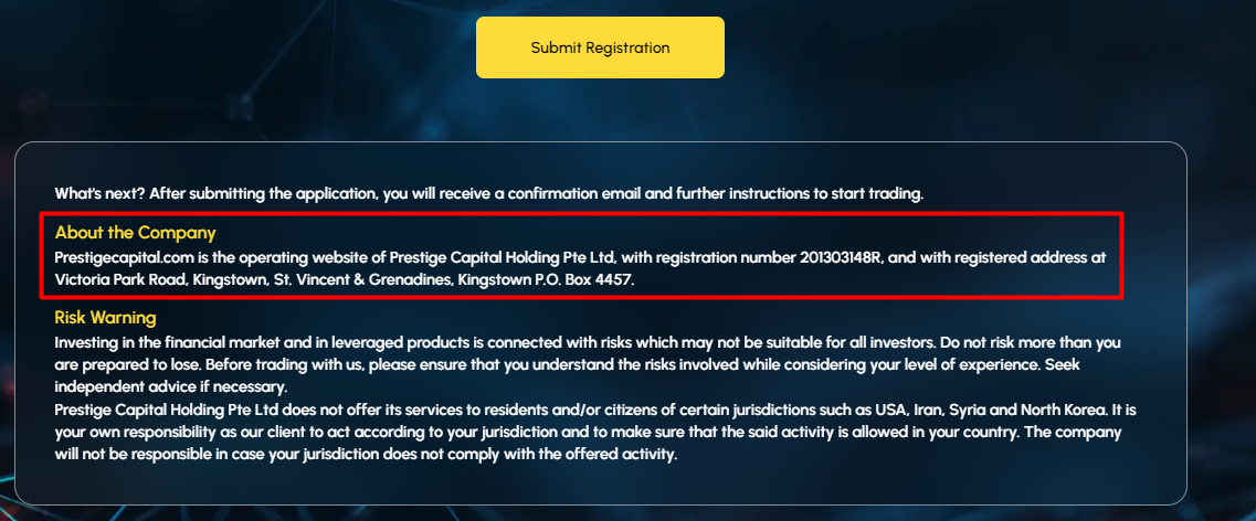Is this firm even registered? We strongly doubt it. There are no legal documents, no details, and no credible registration address. The Prestige Capital Holding Pte Ltd in question doesn’t legally exist, meaning this Forex dealer cannot hold a license. This is already a direct indication of illegal activity.