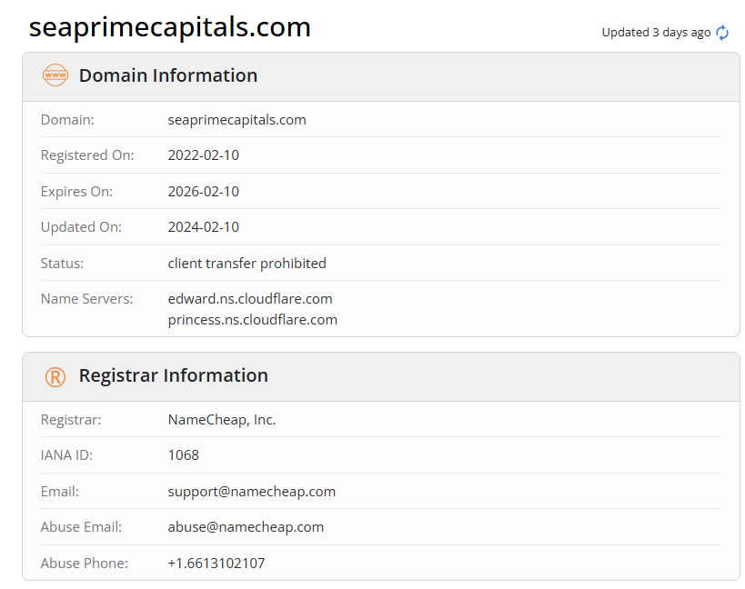 It’s worth noting that the broker has indeed been operating since 2022, but without a license. This is confirmed by both web page archives and domain service data, which indicate the project’s inception during this period. However, an analysis of the web archive shows that in 2022–2023, the platform used a different name (Sea Prime), suggesting a possible rebranding or change in marketing strategy in the coming years.