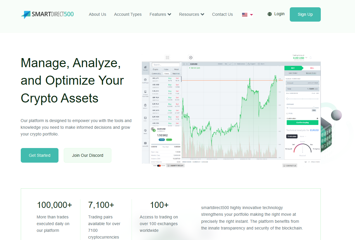 The official website of SmartDirect500 is a textbook example of how a broker platform’s website should not look. The design is cheap, generic, and lacks any hint of uniqueness. The content is a complete disaster. There’s a lot of text, but it’s essentially meaningless fluff and pretentious language. Every section is filled with phrases like “our platform provides everything you need for success”. It’s all written in a “just take our word for it” tone.