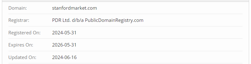 Firstly, Stanford Market has not disclosed its founding date. Despite the footer of their website displaying years from 2011 to 2024, this appears deceptive since the domain stanfordmarket.com was registered on May 31, 2024, very recently. It’s clear now why the broker hides its establishment date, because it’s very short.