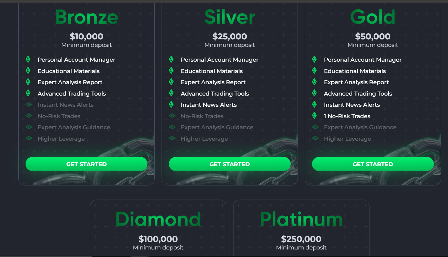 • Diamond with a minimum deposit of $100,000.