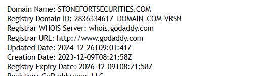 Stonefort Securities likes to speak about its “global mission”, but the facts show otherwise. All permissions were obtained very recently — in 2024–2025. The domain stonefortsecurities.com was registered only in December 2023 and updated in 2024.