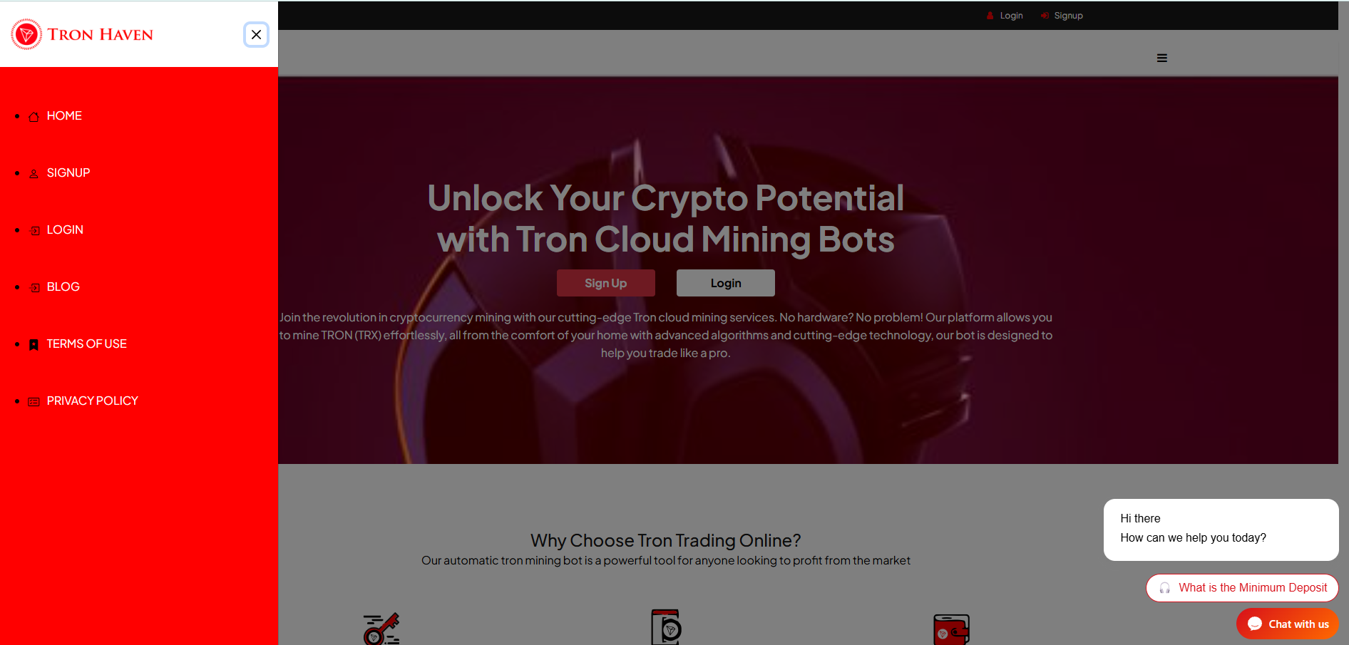 The company’s official website gives us an idea of its activities and the terms it offers. Tron Haven has used the logo and color scheme of the well-known Tron blockchain, but we doubt that tronhaven.online has any real affiliation with this organization.