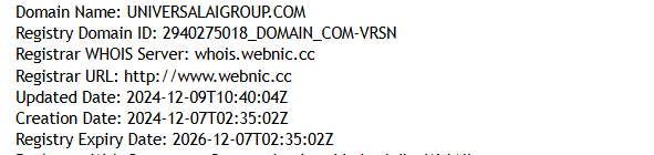 However, that’s not all. We checked the registration date of their domain — universalaigroup.com. According to WHOIS data, it was created on December 7, 2024. This is a brand-new website, not even six months old. So much for their claims of “market experience” and “global expertise”.