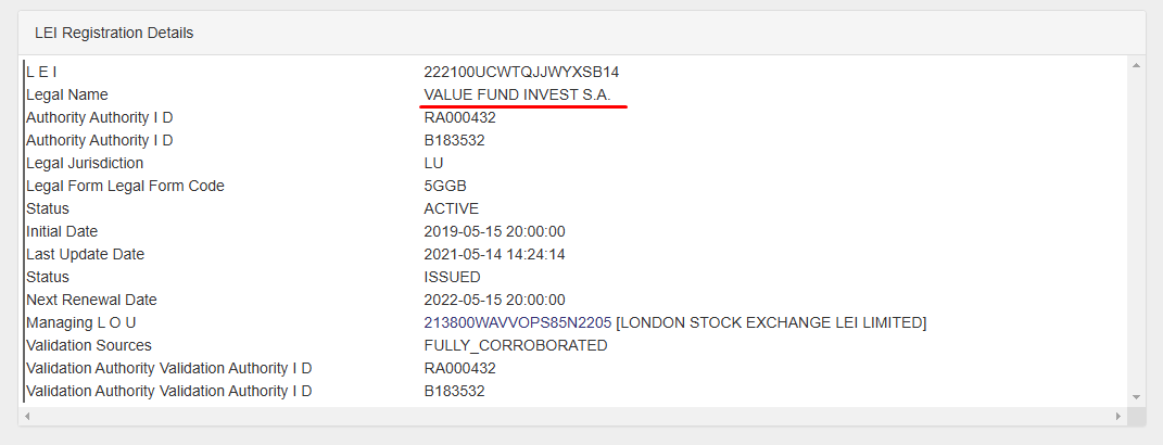 We decided to dig deeper and check whether a company by that name actually exists in Luxembourg. It turns out, yes — there is a registered entity named Value Fund Invest S.A. listed in the registry with LEI code 222100UCWTQJJWYXSB14. It’s a legitimate firm. Here’s the small yet critical detail: it has absolutely no connection to this broker.