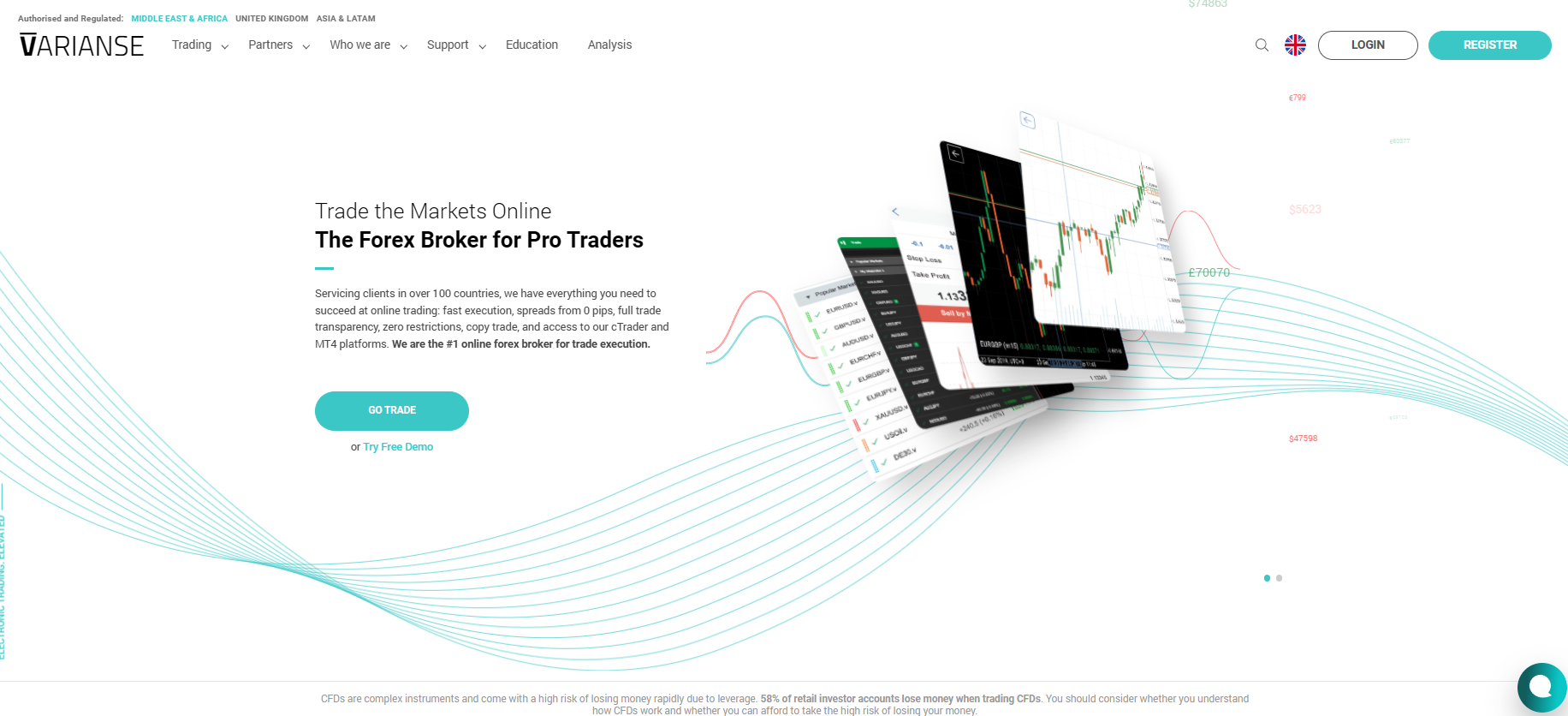 Varianse offers trading through cTrader or MetaTrader, well-known and widely used trading platforms. The firm also advertises educational materials and fast order execution.