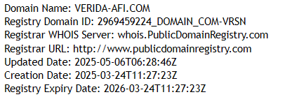 Next, their domain, verida-afi.com, was created on March 24, 2025. A company that is less than a year old physically cannot have “20 years of experience” and “10,000 clients worldwide”. This is a classic sign of a fake narrative — numbers pulled “out of thin air” to gain the trust of people who have already fallen victim to fraud.