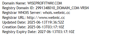 Another important point is operating history. The company does not specify anywhere when it began business. A domain check shows that wiseprofitway.com was registered only in June 2025. This is far too recent to trust with money. Serious brokers have been in the industry for decades and back up their history with real licenses, whereas here there are only a few months of existence and empty words about “reliability”.
